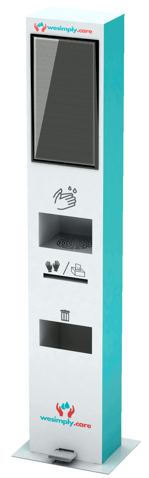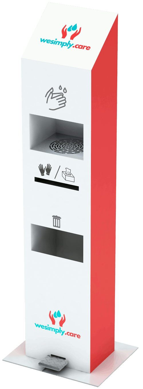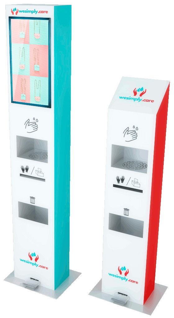 Simply - elegancka i wydajna stacja do dezynfekcji rąk. Idealnie wpasuje się do każdej przestrzeni, gdzie priorytetem jest dbałość o klienta, a dzięki możliwości personalizacji urządzenia wzmacnianie marki i identyfikacja wizualna.